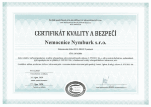 V současné době je kvalita a bezpečnost poskytované zdravotní péče v Nemocnici Nymburk garantována získáním akreditace České společnosti pro akreditaci ve zdravotnictví, s. r. o.