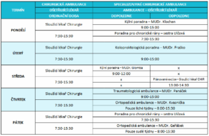 Provozní doba chirurgické ambulance a specializovaných chirurgických ambulancí
